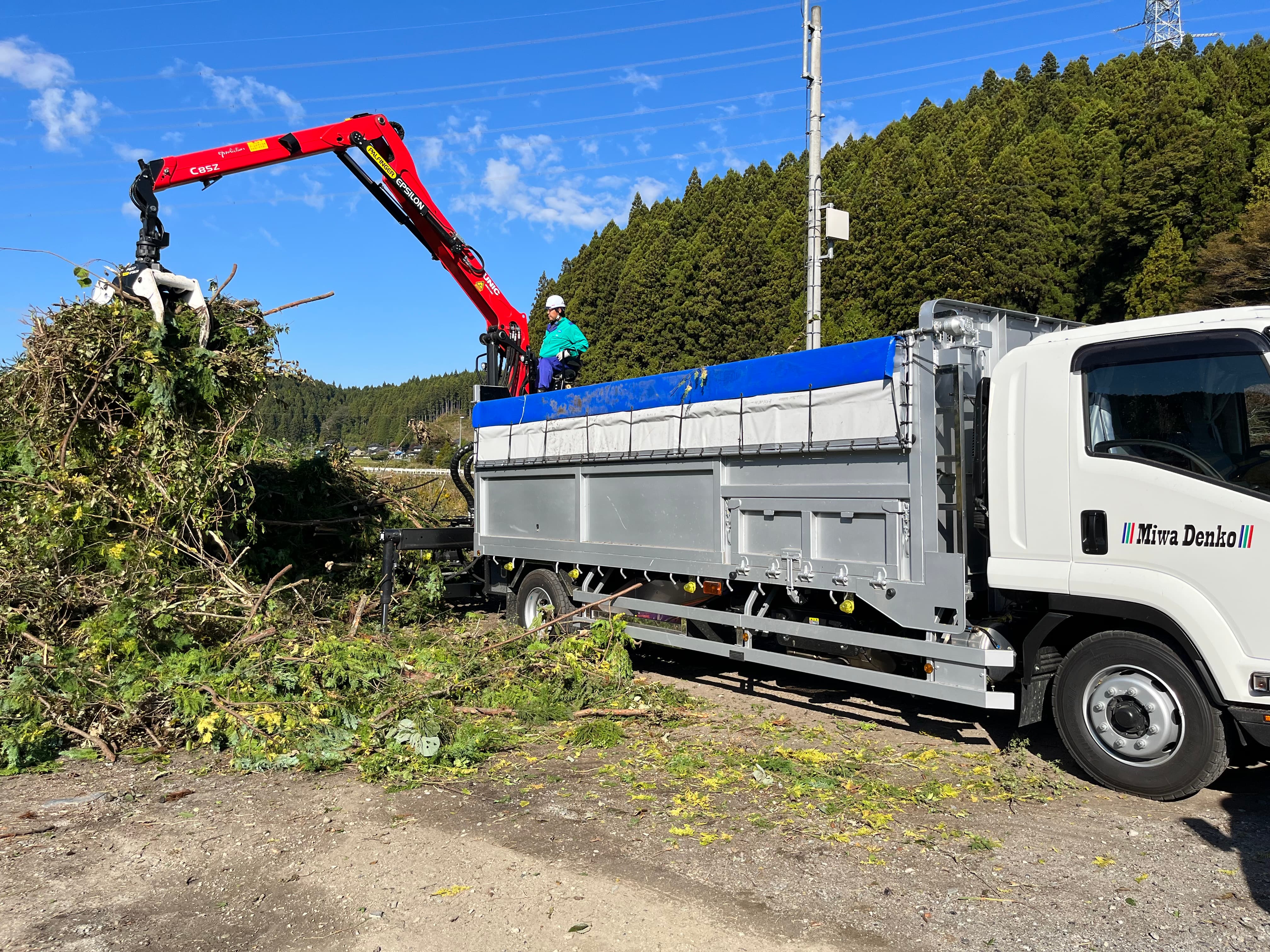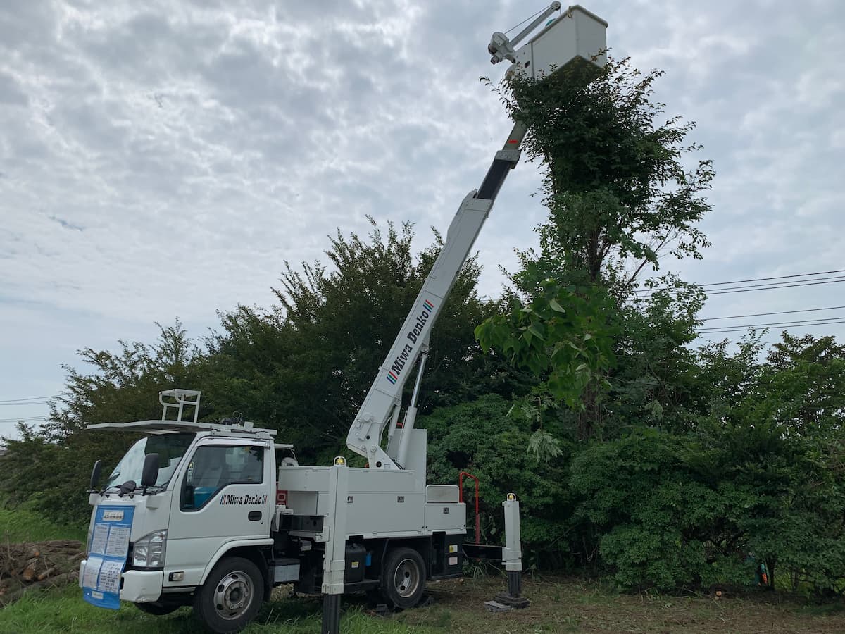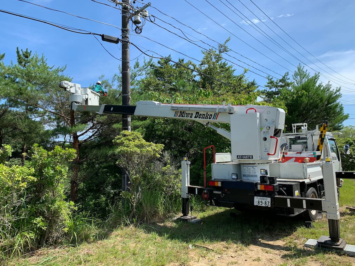 配電線に近づく接近木の伐採を行い、停電を防ぐ作業を行っています。