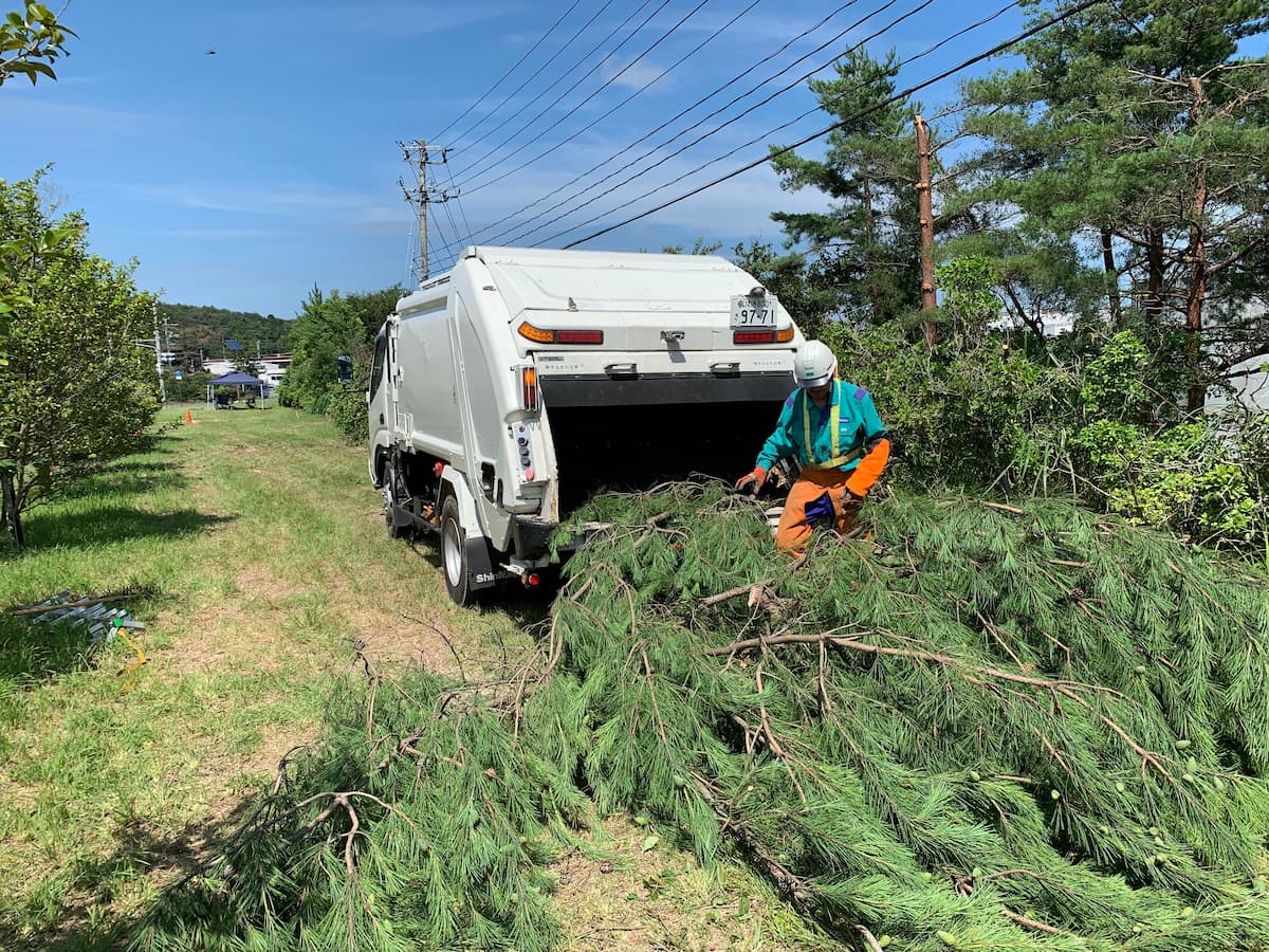 一般家庭の皆様からの依頼にも対応可能です。お気軽にご相談ください。(高所作業車2台、グラップル付積載車1台、パッカー車2台)